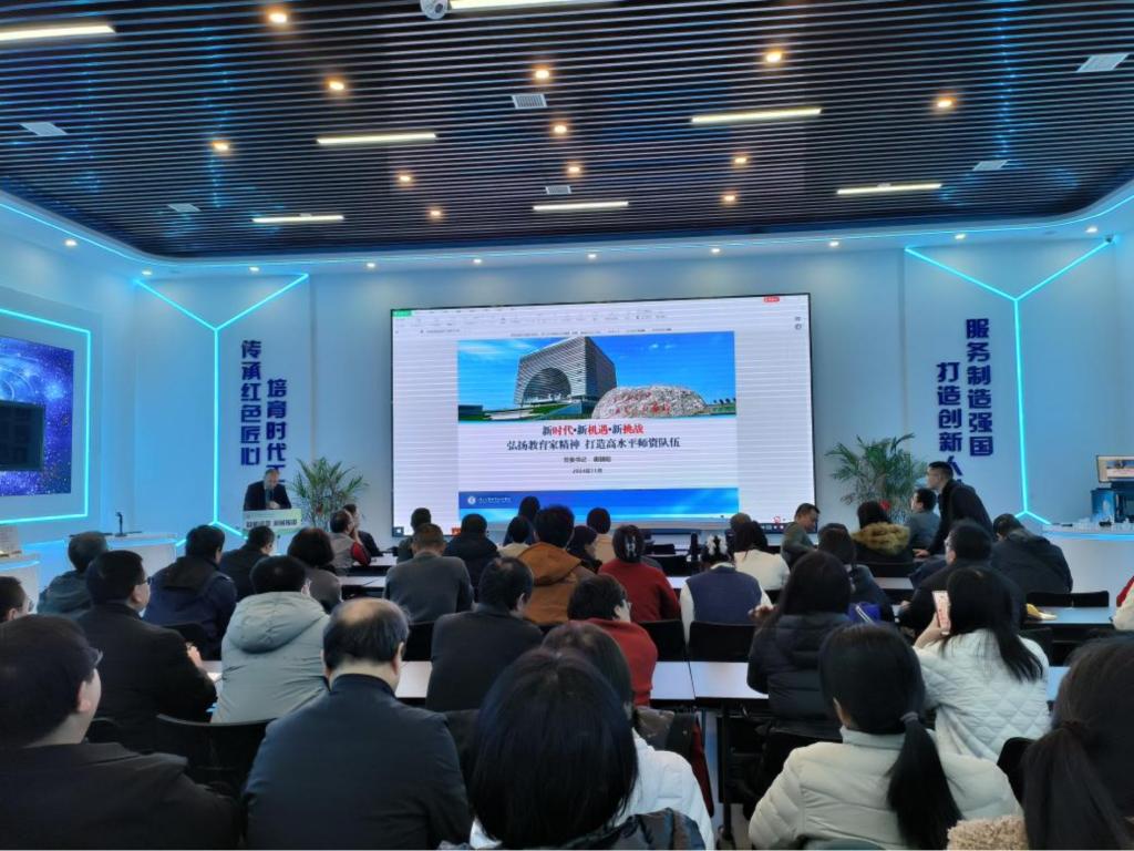 2024年12月2日,机械工程学院“加强内涵学习,提高教学质量”系列培训活动专题学习会在先进制造技术工程中心展厅召开,会议由机械工程学院党总支书记侯涛主持,机械工程学院全体教职工参会。