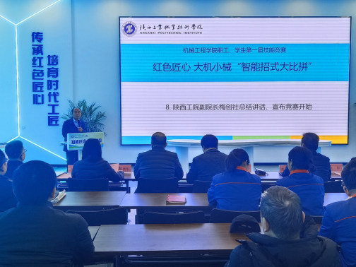 为全面贯彻党的二十届三中全会精神、中国工会十八大精神以及习近平总书记关于新时代人才工作的重要指示,落实《陕西工业职业技术学院“五金”建设实施意见》文件精神,大力弘扬劳模精神、劳动精神和工匠精神,机械工程学院联合校工会、人事处举办“智造招式大比拼”师生同台竞技活动,开幕式于1月9日下午在先进制造技术工程中心展厅进行,副校长梅创社、工会主席张彬、人事处处长殷锋社、航空工程学院副院长刘艳申、机械工程学院领导团队、竞赛相关管理与保障人员、参赛教师及学生参会,机械工程学院副院长王建军主持会议,并对本次大赛的筹备情况及赛制安排进行了介绍。红色匠心大机小械“智造招式大比拼”职工、学生第一届技能竞赛聚焦数字化精密制造领域,推动教学与实践深度融合,为培育“金师”打造优质平台,助力学生提升数字化精密制造专项技能。