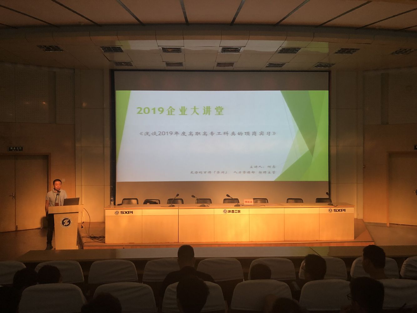 最后,百得(苏州)科技有限公司进行宣讲,讲解国家当前科技发展的方向和目标,使同学们系统地了解了百得公司。整堂讲座生动活泼、精彩纷呈,现场不时响起热烈的掌声。会后何经理还与部分学生进行了面对面交流。