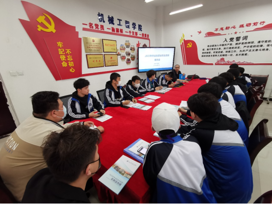 会上,薛龙飞老师首先从学校和学院的就业工作要求出发,结合机械学院就业特点,对就业信息员的具体工作内容进行了详细的说明。随后,带领同学们一起学习了《2022年毕业生就业创业政策宣传册》相关内容,对目前就业创业形势、就业创业政策,以及毕业生就业信息建立、就业信息发布、就业招聘等各项工作进行了介绍。同时强调,就业信息员是各班级的优秀代表,在就业工作中起着至关重要的作用,希望全体就业信息员从自身做起,积极参与各类招聘活动,营造良好就业氛围,发挥好上传下达的桥梁作用,确保各种活动通知、各类招聘信息传播畅通无阻。会后利用晚自习时间,组织班级学生开展主题班会活动,将毕业生就业创业政策,认真负责传达给班级的每一位同学。