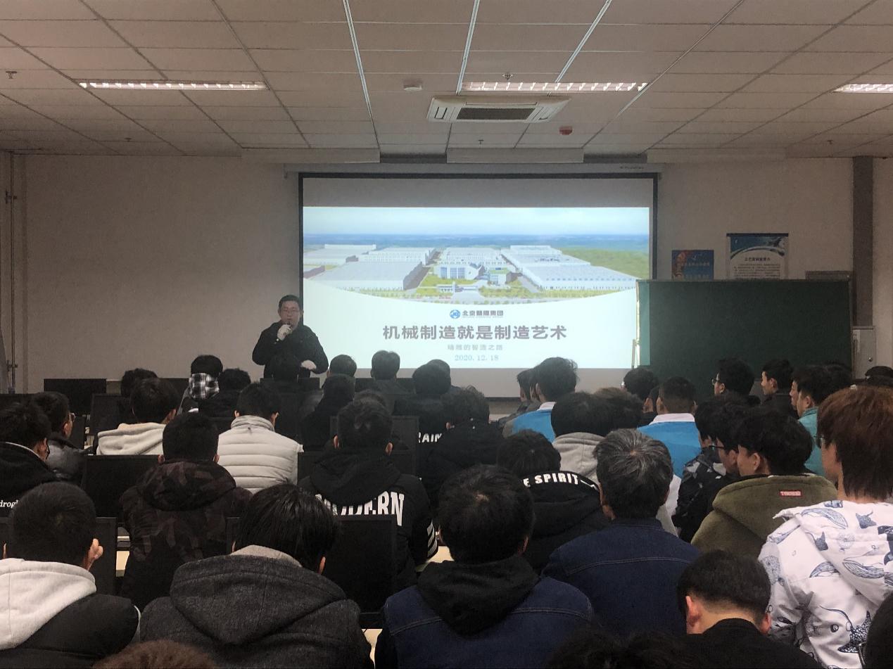 讲座中,王帅从重新认识机械制造,机械制造的创造性和艺术性,机械制造的未来发展等几个方面为同学们解读了机械制造行业背景、发展趋势、未来机遇等,帮助同学们了解行业、掌握专业,找准职业定位,做好职业规划。他以北京精雕科技集团有限公司为例,着重介绍了中国机械行业技术的未来发展趋势,随着新技术、新模式层出不穷,工业逐渐趋向时尚,也逐渐成为时尚,新型制造模式不断创新,机械制造业的社会行业地位也在不断提升,中国制造业未来的发展,需要更多年轻人的加入。他希望同学们能够扎实学习专业知识,在不久的未来成为中坚力量,推动机械制造行业在国民经济中稳定地前进。讲座过程中,同学们聚精会神地聆听,踊跃发言提问。