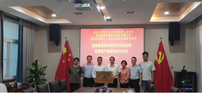 9月2日下午,我校机械工程学院“装备制造类专业校外实训基地”揭牌暨产教融合合作仪式在咸阳盛翼机械制造股份有限公司会议室隆重举行。咸阳市秦都区工信局中小企业服务中心主任李瑛、机械工程学院党总支书记苏宏志、西部产教融合研究院院长王建军、先进制造精雕产业学院负责人王帅、咸阳盛翼机械制造股份有限公司董事长何军峰等相关人员参加了会议,会议由咸阳盛翼机械制造股份有限公司总经理贾天社主持。