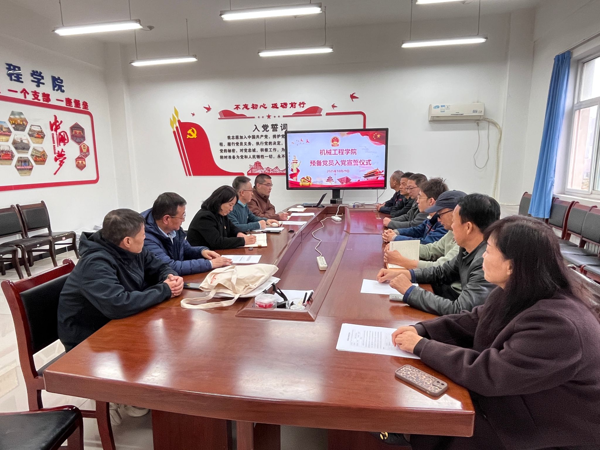 10月29日下午,机械工程学院教师第二党支部在行知楼E410会议室为王道成同志举行了庄重的新党员入党宣誓仪式。仪式由党支部书记王建军同志主持,学院党总支副书记郭旭华同志代表党总支出席了仪式。