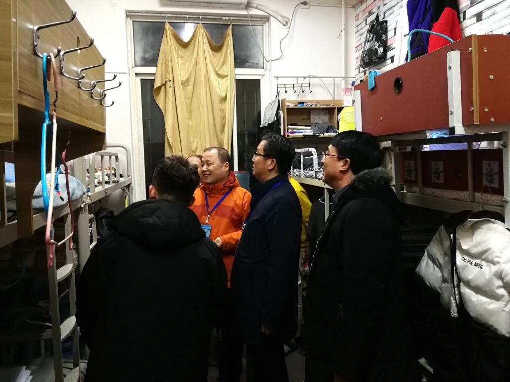 1月5日晚,机械工程学院党总支书记乌军锋带领学工办主任徐军纪、辅导员和学生干部深入学生公寓开展传染病防控和校园安全隐患排查工作。