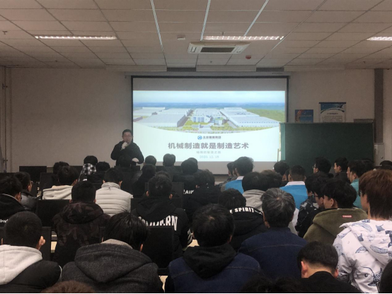 讲座中,王帅从重新认识机械制造,机械制造的创造性和艺术性,机械制造的未来发展等几个方面为同学们解读了机械制造行业背景、发展趋势、未来机遇等,帮助同学们了解行业、掌握专业,找准职业定位,做好职业规划。他以北京精雕科技集团有限公司为例,着重介绍了中国机械行业技术的未来发展趋势,随着新技术、新模式层出不穷, 工业逐渐趋向时尚,也逐渐成为时尚,先进制造技术层出不穷,新型制造模式不断创新,机械制造业的社会行业地位也在不断提升,中国制造业未来的发展,需要更多的年轻人从事机械制造业行业。他希望同学们能够扎实学习专业知识,在不久的未来成为中坚力量,推动机械制造行业在国民经济中稳定地前进。讲座过程中,同学们聚精会神地聆听,踊跃发言提问。