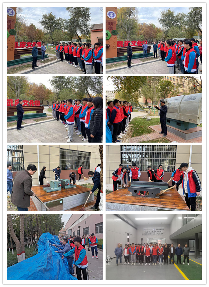全体师生党员对更新换代的旧设备进行除灰除尘、清扫清理,为室外旧设备披上防护的外衣。师生党员还进行了深入交流,大家纷纷表示将以本次活动为契机,通过学习了解机械工业发展史及未来发展趋势,决心把学习成效转化为学习、工作的动力,将工业精神带到个人的工作、学习、生活中去,用奋斗和热情坚守初心,用拼搏和创新创造机械行业的美好未来。