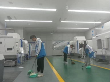随后同学们按区域分组,在6位负责老师的带领下展开清洁工作。清洁前各个负责老师特意嘱咐安全第一,不要轻易触碰机床,以免受伤。