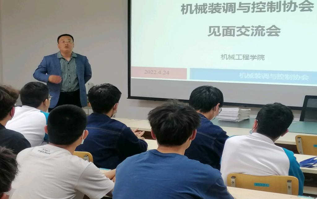 2022年4月24日,机械工程学院机械装调与控制协会2022年见面交流会在精艺楼2016召开,机械工程学院院长赵明威、副院长刘艳申、协会指导教师黄鑫、安健及协会全体会员参加了会议。
