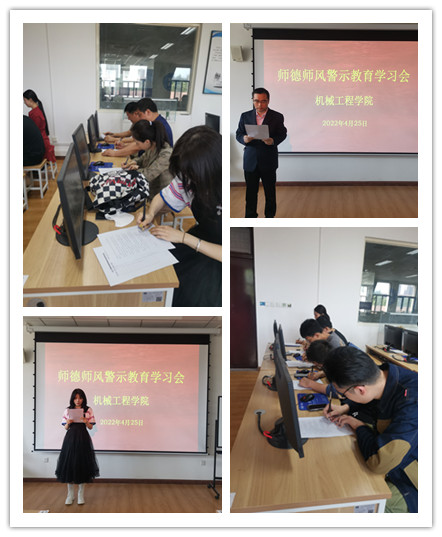 为进一步规范教师履职履责行为,持续强化教师思想政治和师德师风建设工作,认真落实《教育部关于建立健全高校师德建设长效机制的意见》《中共中央国务院关于全面深化新时代教师队伍建设改革的意见》《新时代高校教师职业行为十项准则》等文件精神,4月25日下午,机械工程学院党总支在精艺楼2005组织全体教师开展师德师风警示教育活动。会议由党总支书记苏宏志主持。