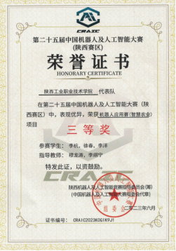 图2第25届中国机器人及人工智能大赛全国决赛三等奖获奖证书