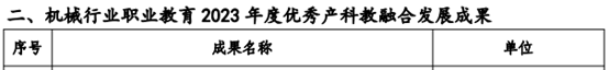 2024年3月27日,机械工业教育发展中心公布了2023年度产科教融合发展成果和产学研合作项目评选结果名单,全国职业院校和相关企业提交的产教融合成果、案例和项目共计219篇,经专家评审,机械工程学院报送的《深化产教融合,共建产业学院,校企协同打造高水平制造人才培养新范式》、《接本地化人才培养需求,探索制造类专业海外办学新模式》和《机械制造及自动化专业校企双元育人项目》分别被评为2023年度十佳产科教融合发展成果、2023年度优秀产科教融合发展成果和2023年度优秀产学研合作项目。