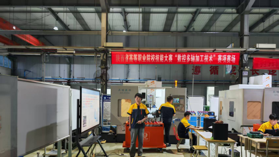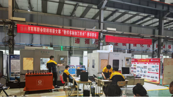 首先,数控多轴加工技术赛项参赛学生小组根据2025年陕西省职业院校技能大赛规程,进行了为期1小时的技能展示与讲解。参赛学生熟练的操作能力和扎实的理论知识,展示了良好的备赛成效,赢得了在场专家与指导老师的一致认可。
