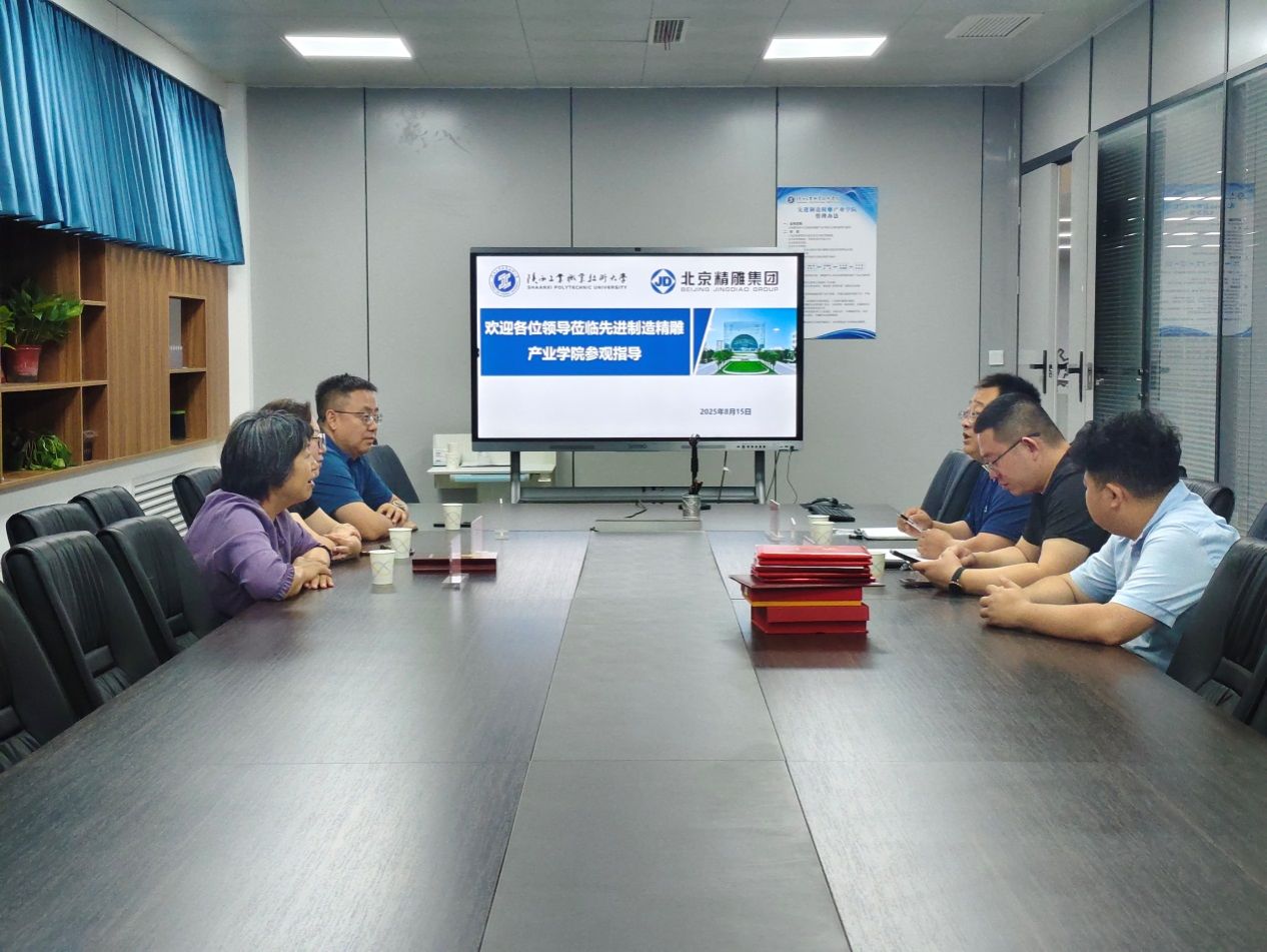 2025年8月15日上午,北京市门头沟区经济和信息化局调研员张洁、北京精雕执行副总裁李芳一行来我校调研实训条件建设与产业学院发展情况,并参观了我校智能制造协同创新中心、数字化制造虚拟仿真中心和精雕产业学院。机械工程学院院长赵明威、西安精雕精密机械工程有限公司总经理蔡锐龙、精雕产业学院王帅、机械创新教研室主任潘冠廷等陪同参观。