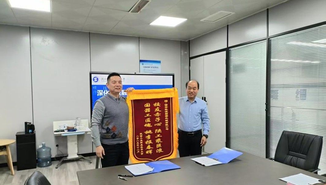 在与会人员的共同见证下,梅创社副校长与徐建国总经理代表双方签署了实训室共建协议。随后,梅创社副校长代表学校向西安巨浪精密机械有限公司赠送锦旗,标志着合作关系迈向新阶段。
