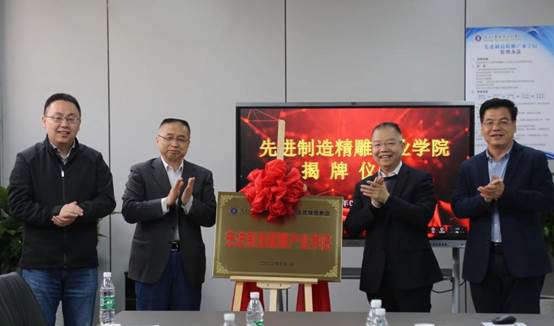 在听取了先进制造精雕产业学院建设情况、精雕学徒班学员学习情况的汇报后,与会领导共同为校企共建“先进制造精雕产业学院”揭牌。随后,双方就专业建设、人才培养、校企合作、科研开发、社会服务、师资任用、项目建设进行了深度交流和座谈。